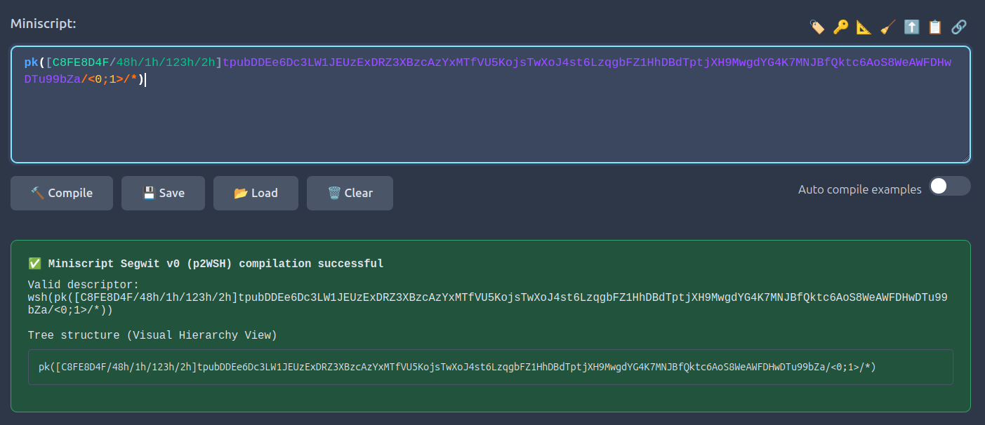 Miniscript Studio aims to bring this technology to developers at all levels through visual analysis, better error messages, automatic key management, and full descriptor and Taproot support. Whether you're exploring your first multisig setup or designing complex vault architectures, the Studio provides the tools and information needed to build with confidence.